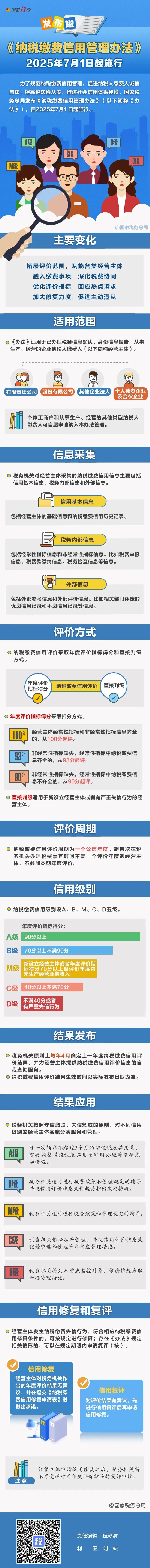 7月1日起施行!一图了解《纳税缴费信用管理办法》政策要点
