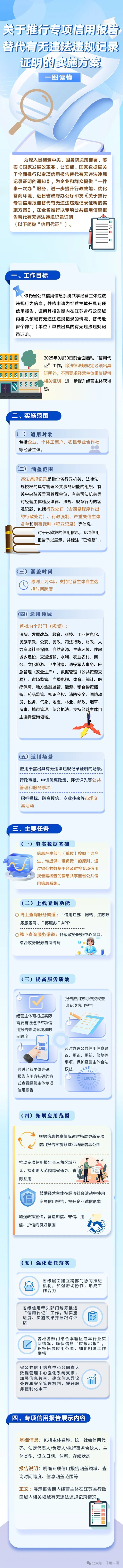 【图解信用】江苏:《关于推行专项信用报告替代有无违法违规记录证明的实施方案》